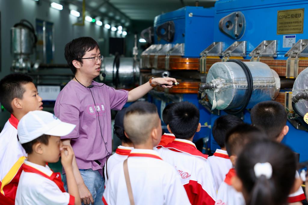 中国科学院近代物理研究所,讲解员介绍兰州重离子加速器。(中国科学院供图)