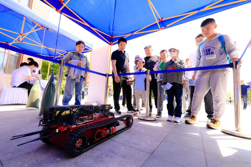 中国科学院沈阳自动化研究所,公众参观履带可变形急救机器人。(中国科学院供图)