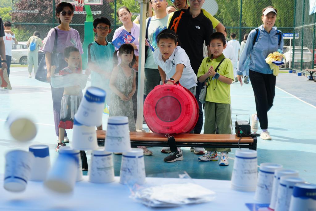 中国科学院力学研究所,孩子们体验“空气炮”互动游戏。(中国科学院供图)