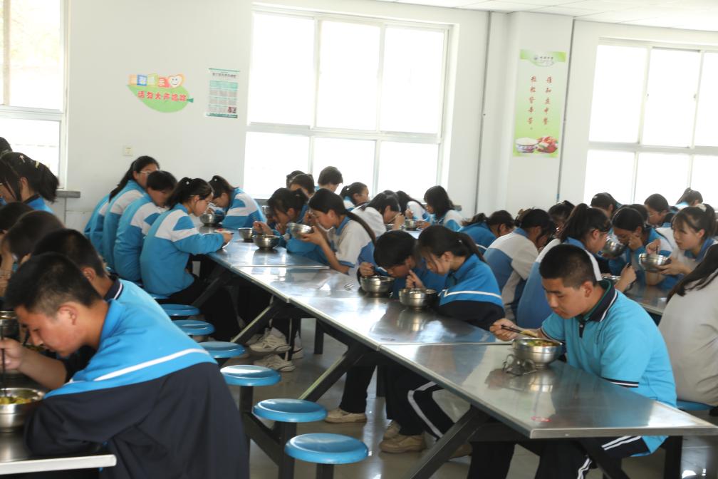 正午,下课铃响。专注听课一上午的学生们从教室里鱼贯而出,向食堂奔去。王蕊和小伙伴走在队伍中间,讨论着即将吃到的蒜薹炒肉和炒瓠子。循例,学校总是提前一周公布菜谱。营养丰富、变着花样的热乎饭菜是正在长身体的学生们充电蓄能的“法宝”。