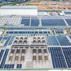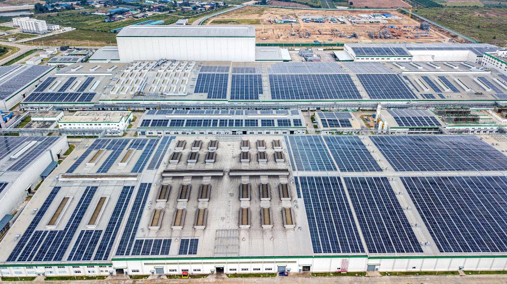 这是2023年11月7日在泰国春武里府拍摄的中泰合作建设的工厂屋顶光伏发电项目现场(无人机照片)。新华社记者王腾摄