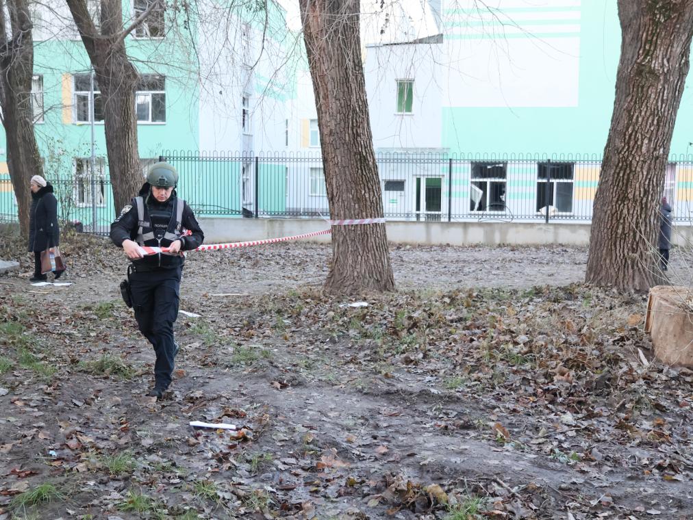 2023年11月25日,在乌克兰基辅市,执法人员封锁空袭现场。新华社发(罗曼·佩图什科夫摄)