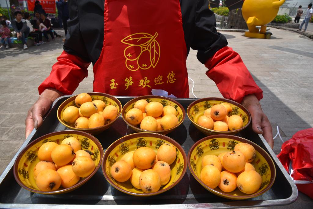 5月18日,永善县玉笋村村民用刚采摘的枇杷招待游客。新华社记者董博怀 摄