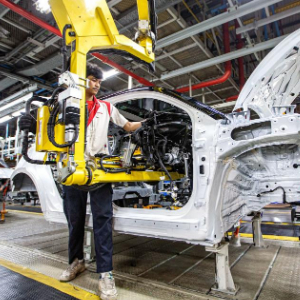 1月12日,工人在位于泰国罗勇的长城新能源汽车制造基地生产车间内工作。新华社记者 王腾 摄