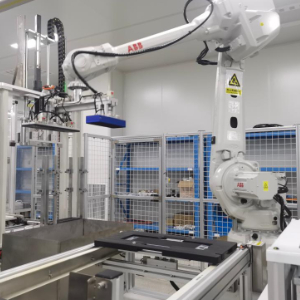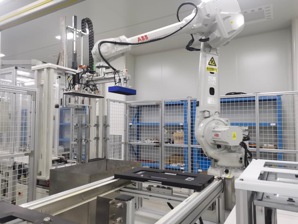 在安徽元隽氢能科技股份有限公司,机器人正在对物料进行定位检测和叠装。新华社记者水金辰 摄