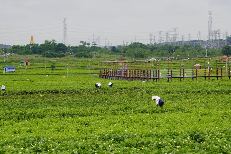 花农在田间采摘茉莉花。新华社记者 赵欢 摄