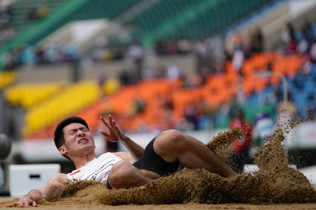 5月22日,中国选手衷黄浩在男子跳远T38级别决赛中。新华社记者 张笑宇 摄