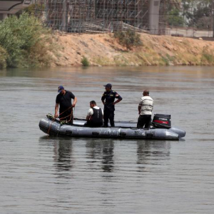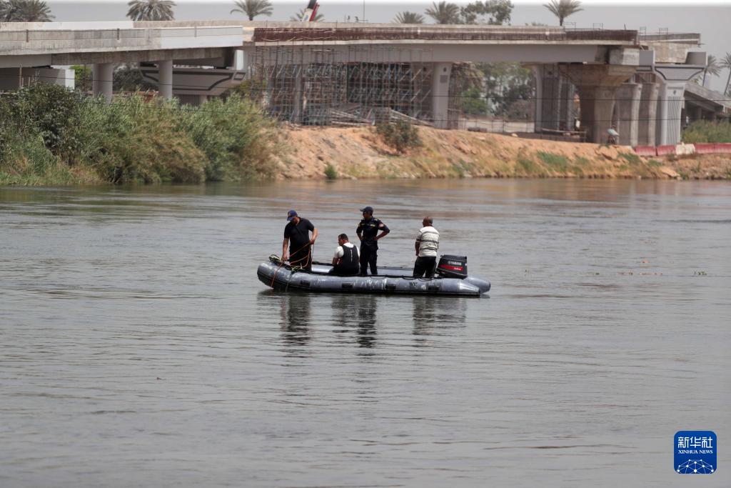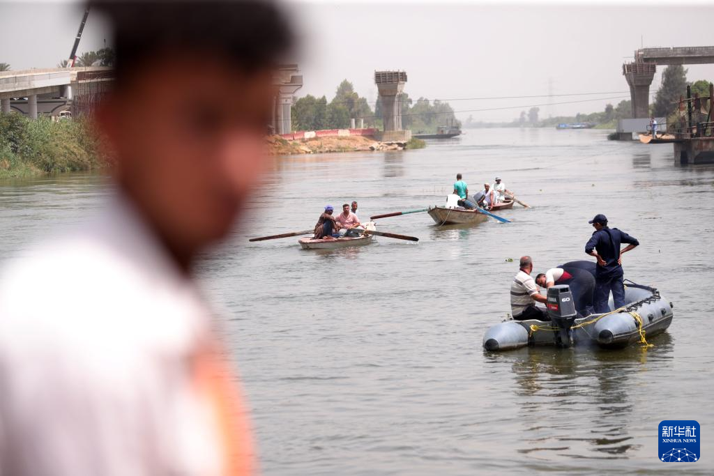 5月21日,在埃及吉萨省,救援人员在小型巴士落水事故现场工作。新华社发(艾哈迈德·戈马摄)
