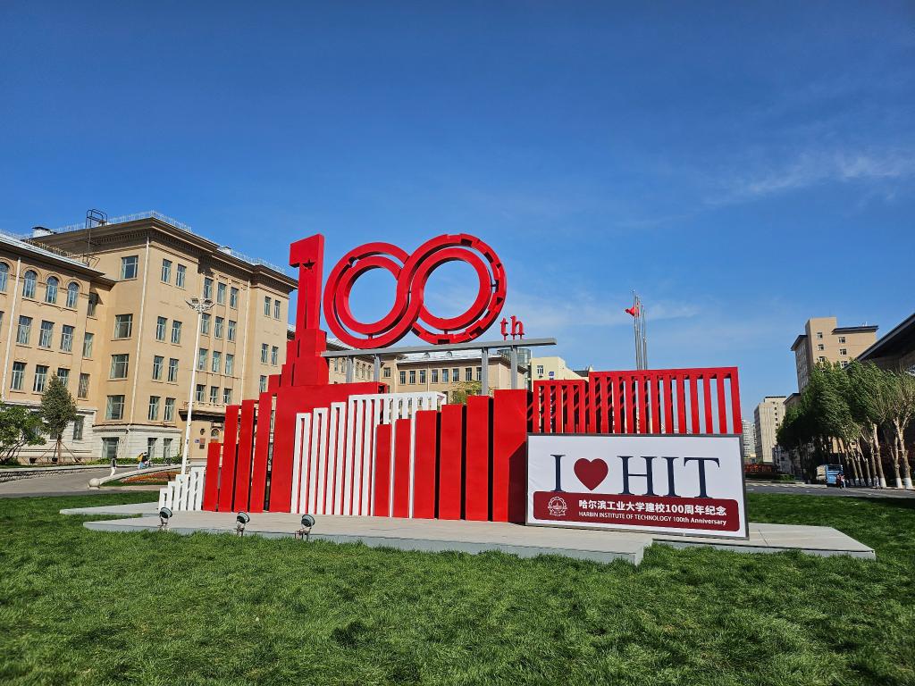 哈尔滨工业大学校园内百年校庆纪念墙。新华社记者 张玥 摄