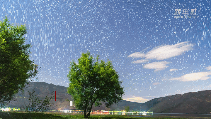子时(23:00-01:00),风平浪静,茈碧湖上空满天星辰化作一道道星轨。