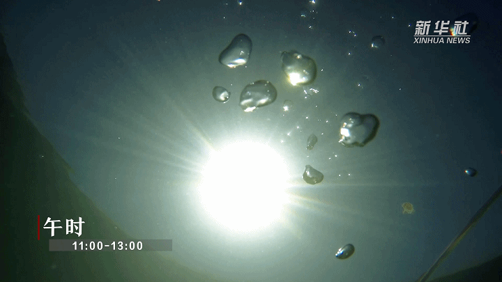 午时(11:00-13:00),乘游艇一路向北,行至湖心,水珠自湖底涌出,尽览“水花树”奇景。