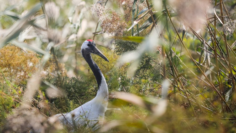 ↑这是在辽河口自然保护区拍摄的丹顶鹤。