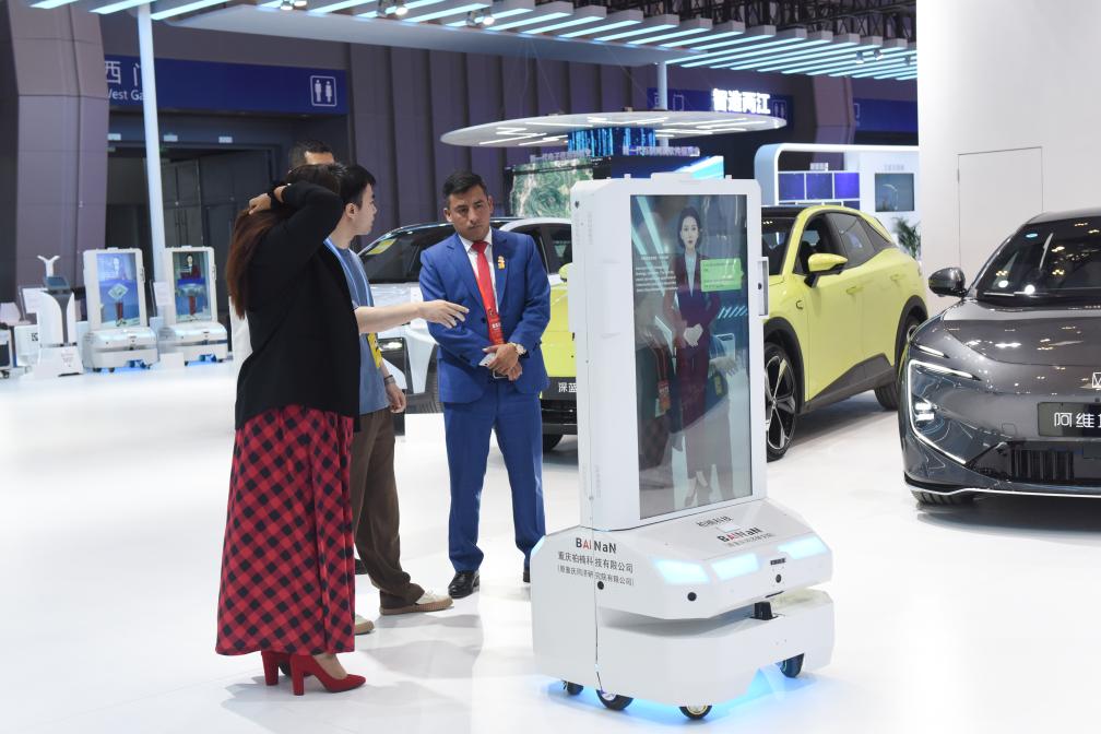 5月23日,工作人员在西洽会上给观众介绍讲解机器人。新华社记者 张子彧 摄