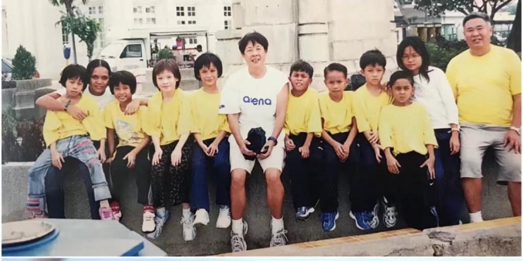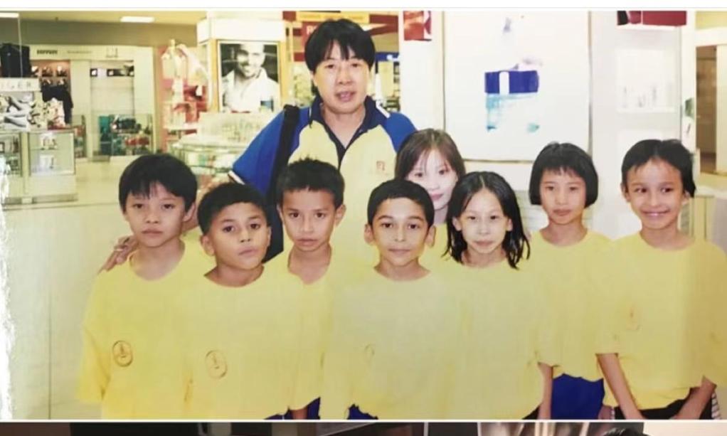当地华文报纸报道周希洋《栽培明日跳水之星》,图中箭头所指的就是张俊虹和队友们进行跑步训练