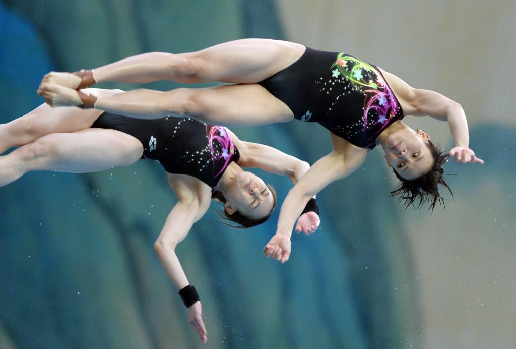 2015年3月13日,国际泳联世界跳水系列赛北京站女子双人10米跳台决赛中,马来西亚选手张俊虹/梁敏仪获得亚军。新华社记者陶希夷摄
