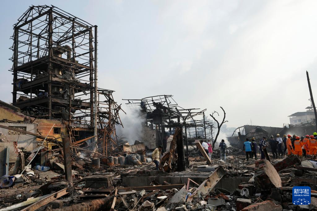 5月24日,救援人员在印度马哈拉施特拉邦塔那市发生爆炸的化工厂工作。新华社/美联