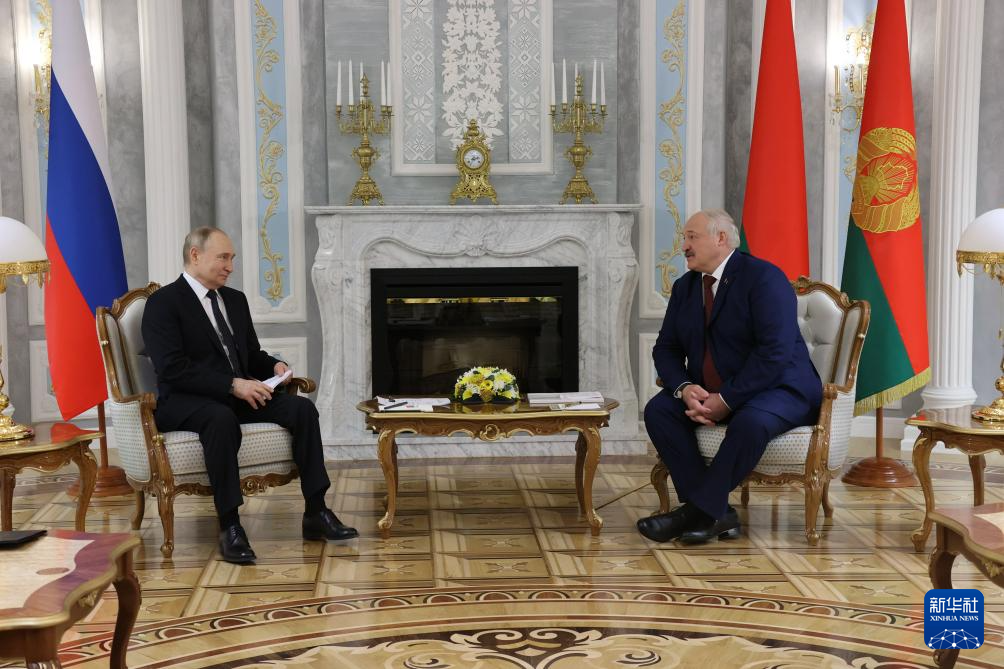 5月24日,俄罗斯总统普京(左)与白俄罗斯总统卢卡申科在白俄罗斯首都明斯克举行会谈。新华社发(白俄罗斯总统网站供图)