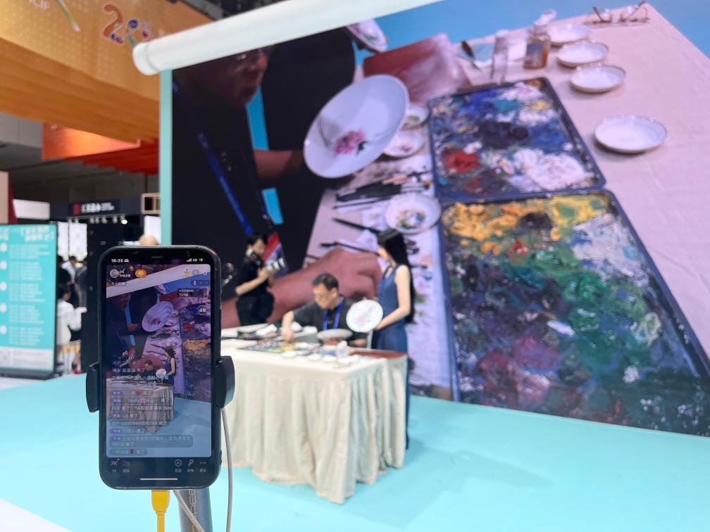 5月23日,艺术家洪米川在文博会现场展示瓷画技艺。新华社记者 赵瑞希 摄