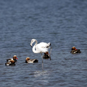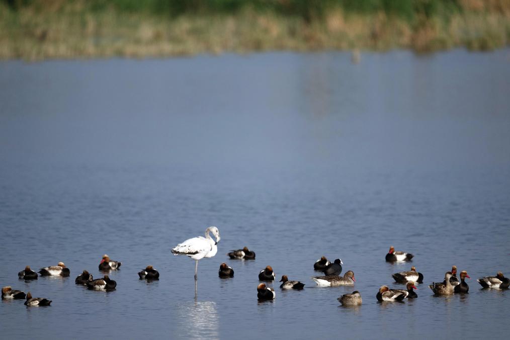 大红鹳又称大火烈鸟,主要生活在盐水、淡水栖息地,喜欢结群生活,主要分布于热带、亚热带地区,已被列入国家保护的有益的或者有重要经济、科学研究价值的陆生野生动物名录。陈峰说:“大红鹳在乌梁素海属于‘迷鸟’,实属罕见。我们已安排专人在湖区周边实行重点巡查,防止人类活动干扰大红鹳的栖息,给它营造出适宜、安全的栖息环境。”