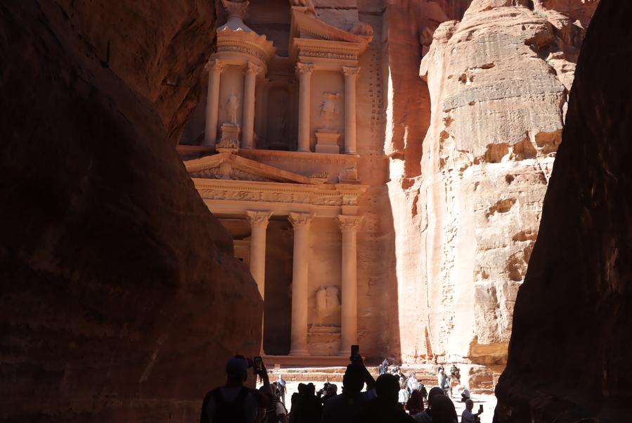 2023年1月20日,游客在约旦佩特拉古城游览。新华社记者冀泽摄