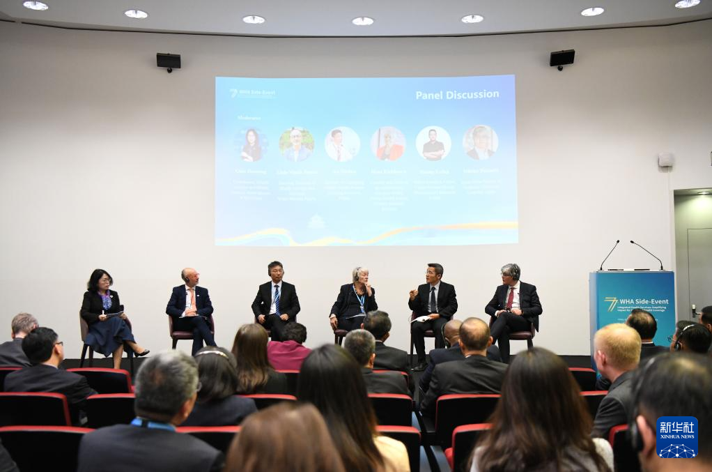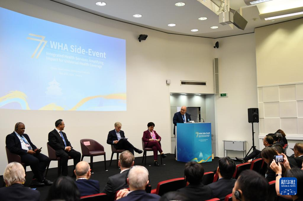 这是5月27日在瑞士日内瓦拍摄的第77届世界卫生大会“促进以人为本的整合型医疗卫生服务体系建设,落实全民健康覆盖”主题边会现场。新华社记者 连漪 摄