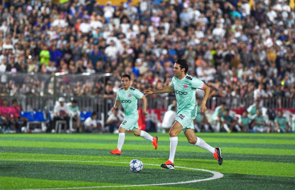 5月27日,卡卡(右)在“逐梦”冠军明星公益赛中。新华社记者 杨文斌 摄