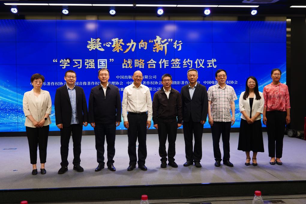 “学习强国”学习平台分别与中国出版集团有限公司、中国音乐著作权协会、中国音像著作权集体管理协会、中国文字著作权协会、中国摄影著作权协会、中国电影著作权协会、上海蜜度科技股份有限公司签订战略合作协议,实现强强联合优势互补,在数智赋能融合出版、协同发展版权保护、人工智能数据服务等重点领域开启深度合作,推动产业提质,实现高质量发展。