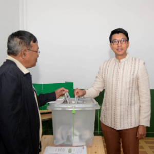 马达加斯加总统拉乔利纳当天上午前往首都塔那那利佛的一处投票站投票。拉乔利纳在接受记者采访时呼吁民众履行公民义务,积极参与投票。