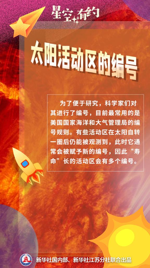 “太阳活动区是指太阳上各主要的活动体,如黑子、光斑、谱斑、耀斑和活动日珥等频繁活动的区域。”滕伟霖解释说,为了便于研究,科学家们对其进行了编号,目前最常用的是美国国家海洋和大气管理局的编号规则。有些活动区在太阳自转一圈后仍能被观测到,此时它通常会被赋予新的编号,因此“寿命”长的活动区会有多个编号。