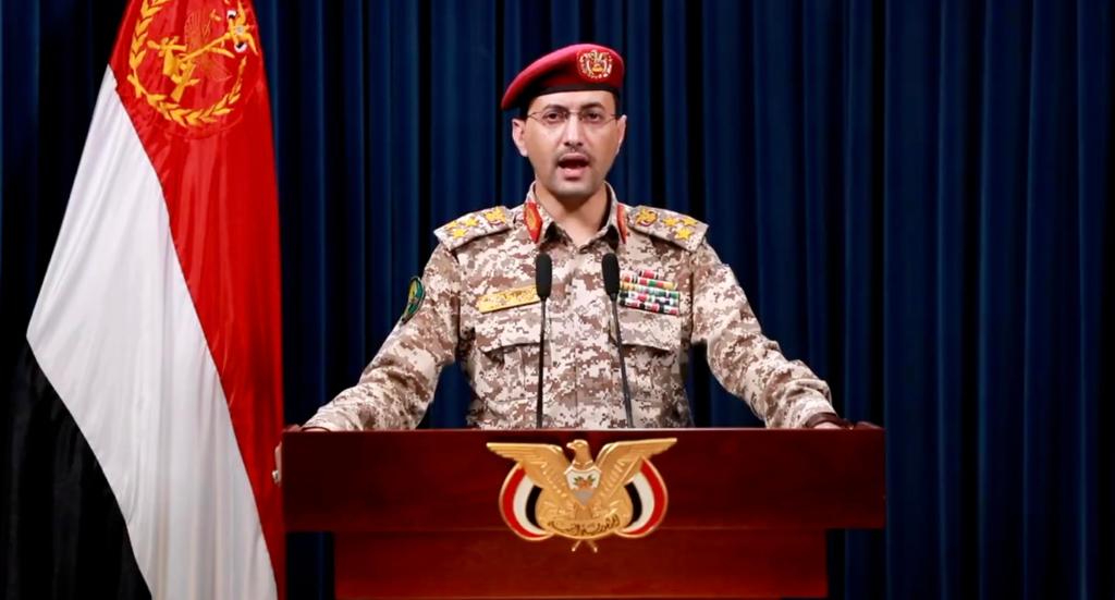 这张4月27日的视频截图显示,也门胡塞武装发言人叶海亚·萨雷亚在萨那发表声明。新华社发