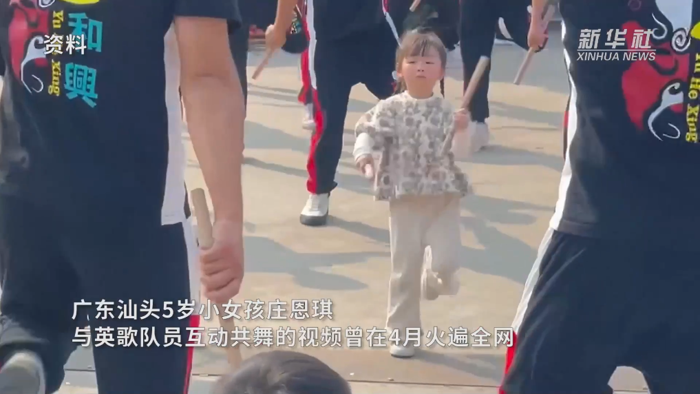 广东汕头5岁小女孩庄恩琪与英歌队员互动共舞的视频曾在4月火遍全网。