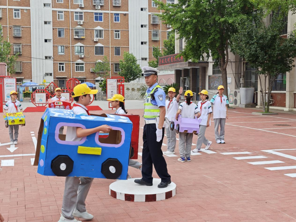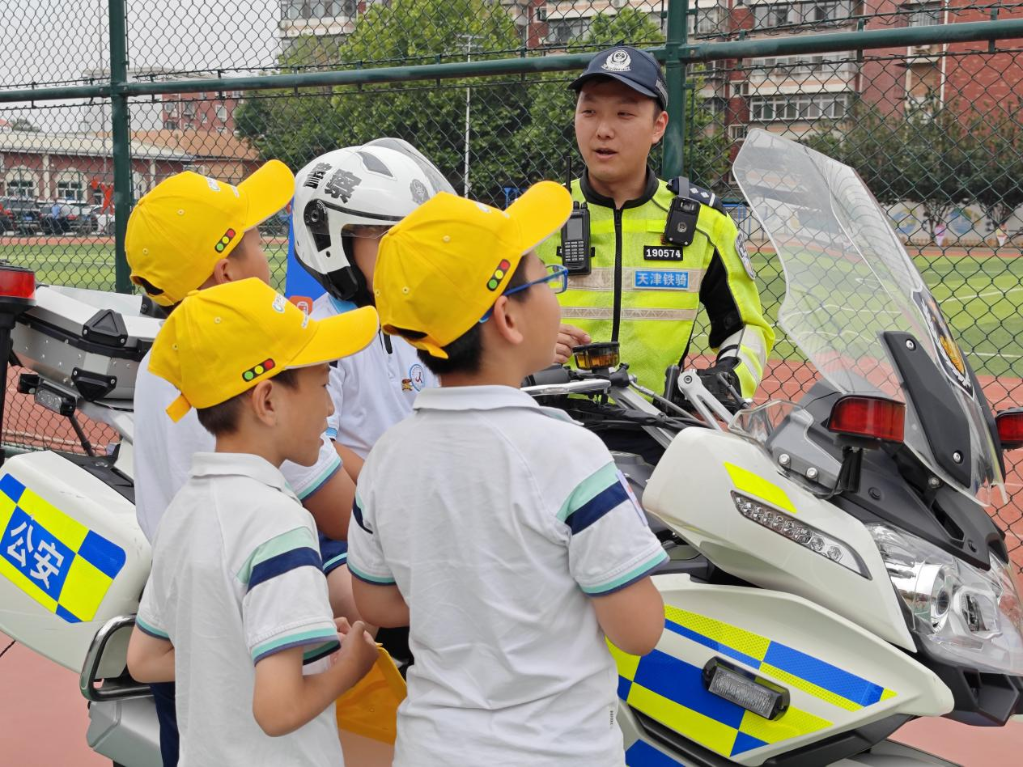 天津一场校园交通安全宣传教育活动现场。新华社发