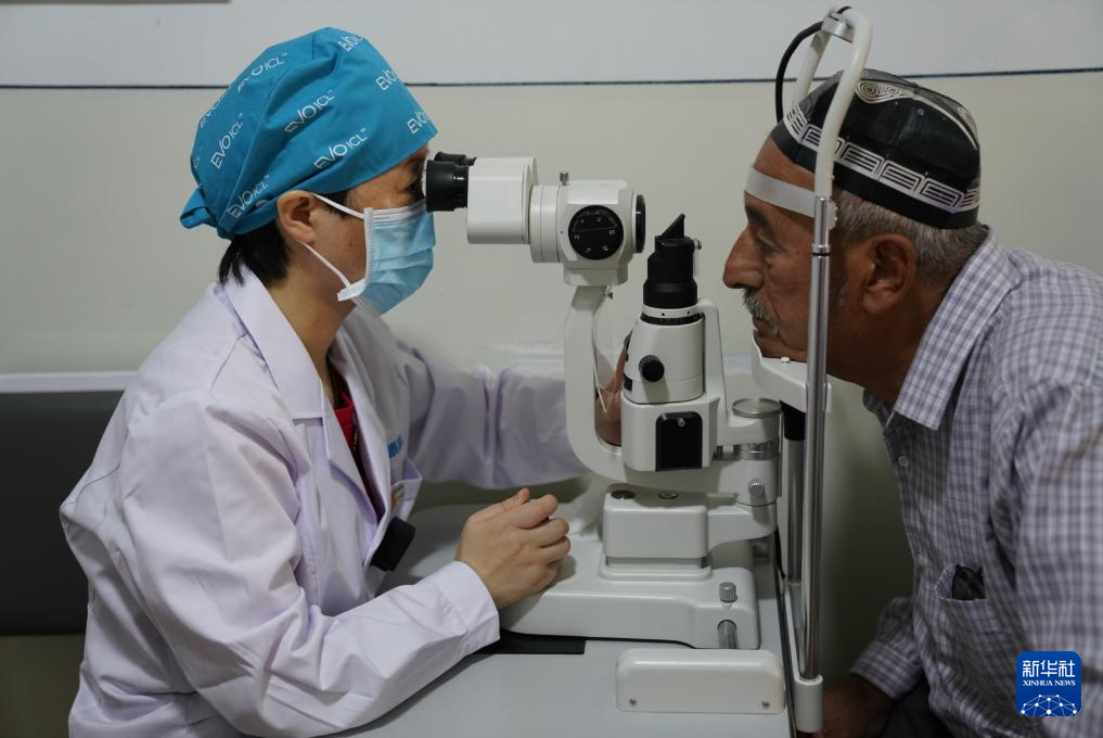5月29日,在乌兹别克斯坦浩罕市眼科医院,白内障患者接受中方医疗团队检查。新华社发(扎法尔摄)
