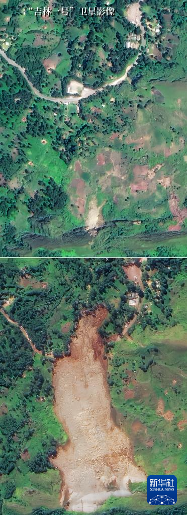 卫星影像:巴布亚新几内亚山体滑坡发生前后-新华网