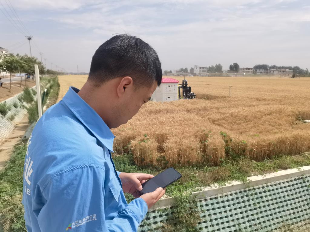 在阜南县苗集镇,托管服务2500亩麦田的中化现代农业阜南技术服务中心负责人虞叶蓁说,5月20日前后小麦灌浆碰上了干热风,如果不采取举措,小麦就会早衰停止灌浆,影响产量。在这个关口,他在雾化喷灌用水中同时加入叶面肥,一遍喷灌就增加了3克千粒重,换算下来亩均增产了近100斤。