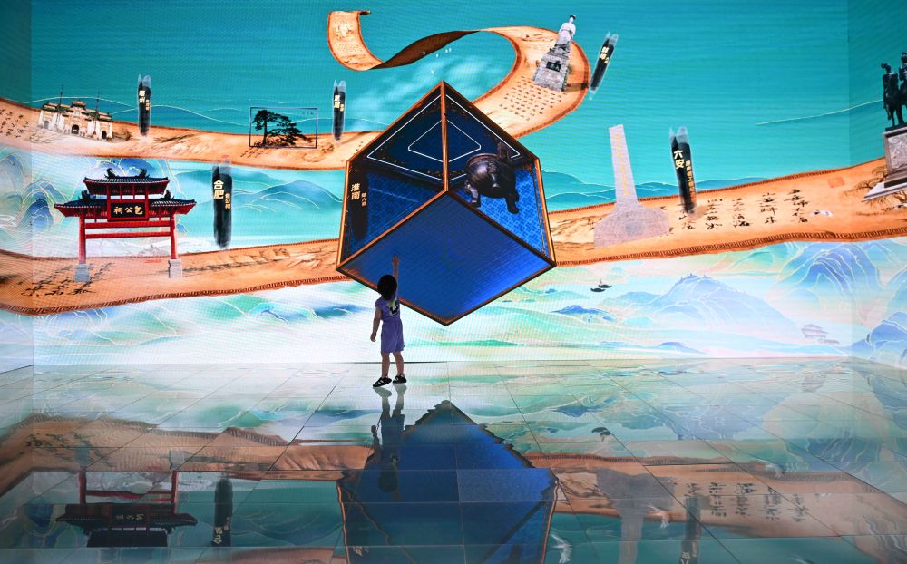 2024年5月24日,小朋友在第二十届中国(深圳)国际文化产业博览交易会科大讯飞展台体验3D奇幻空间。新华社记者 邓华 摄