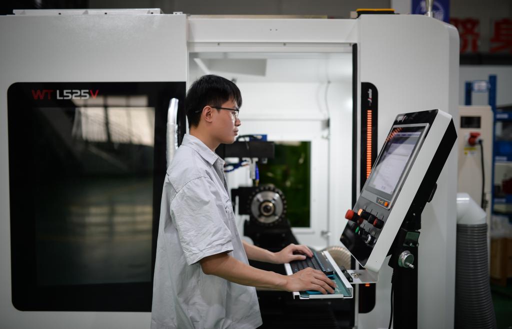 员工在原点智能技术有限公司车间操作数控机床。新华社记者李任滋 摄