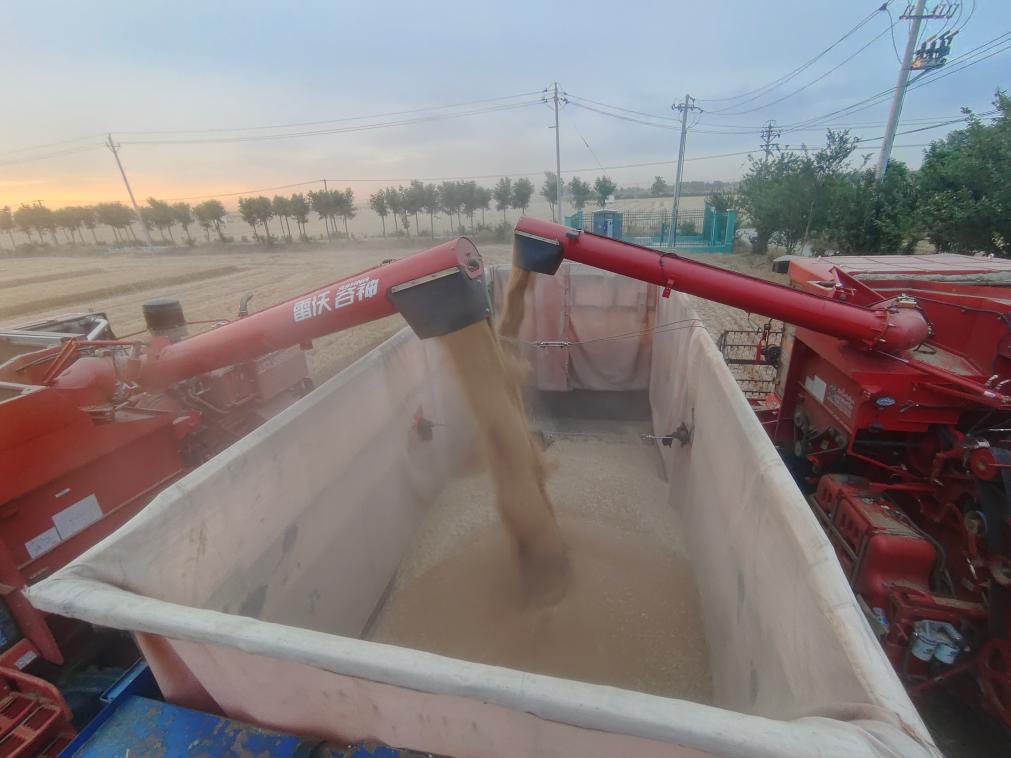 这是6月2日亳州市涡阳县西阳镇解沟村的麦收现场。(程利杰 摄)