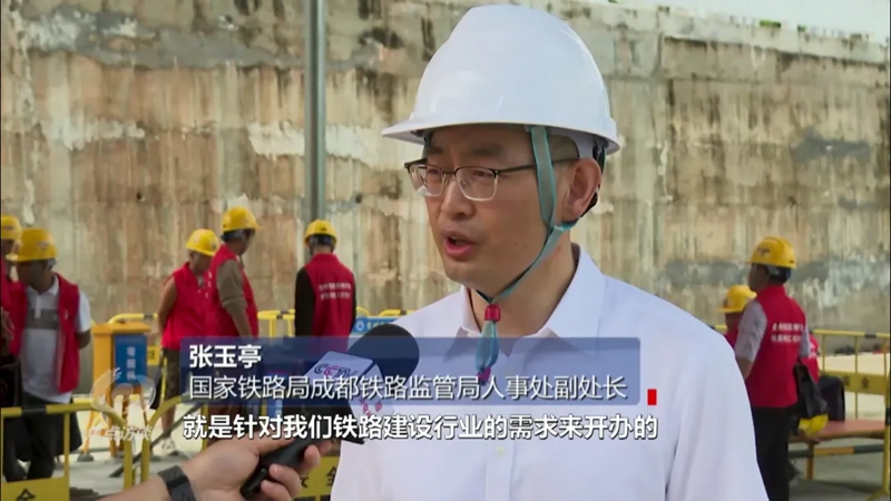 国家铁路局成都铁路监管局人事处副处长张玉亭:“我们的针对性非常强,就是针对铁路建设行业的需求来开办。举办培训班的目的主要是提高专业性,特别是提高产业工人的安全生产意识。”
