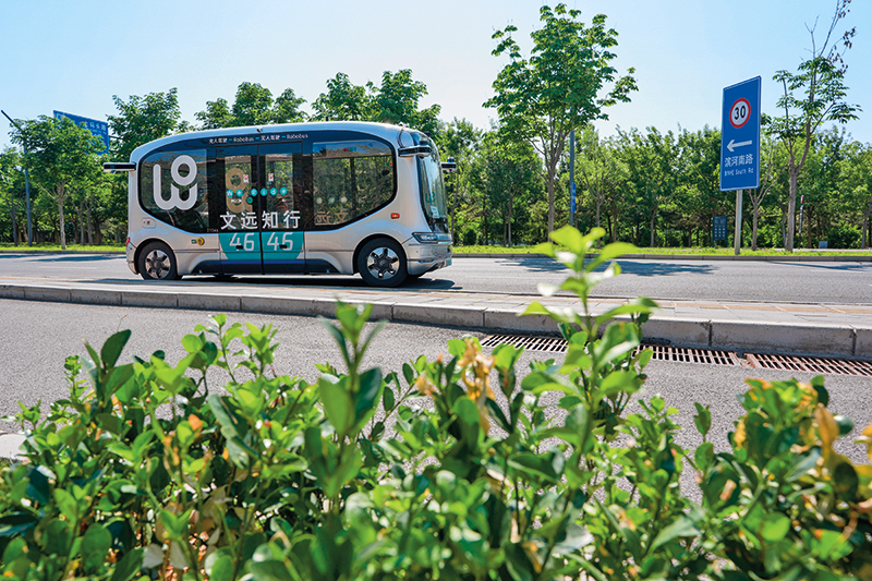 在北京城市副中心,一辆无人驾驶小巴在运行中(2024年5月21日摄) 鞠焕宗摄/本刊