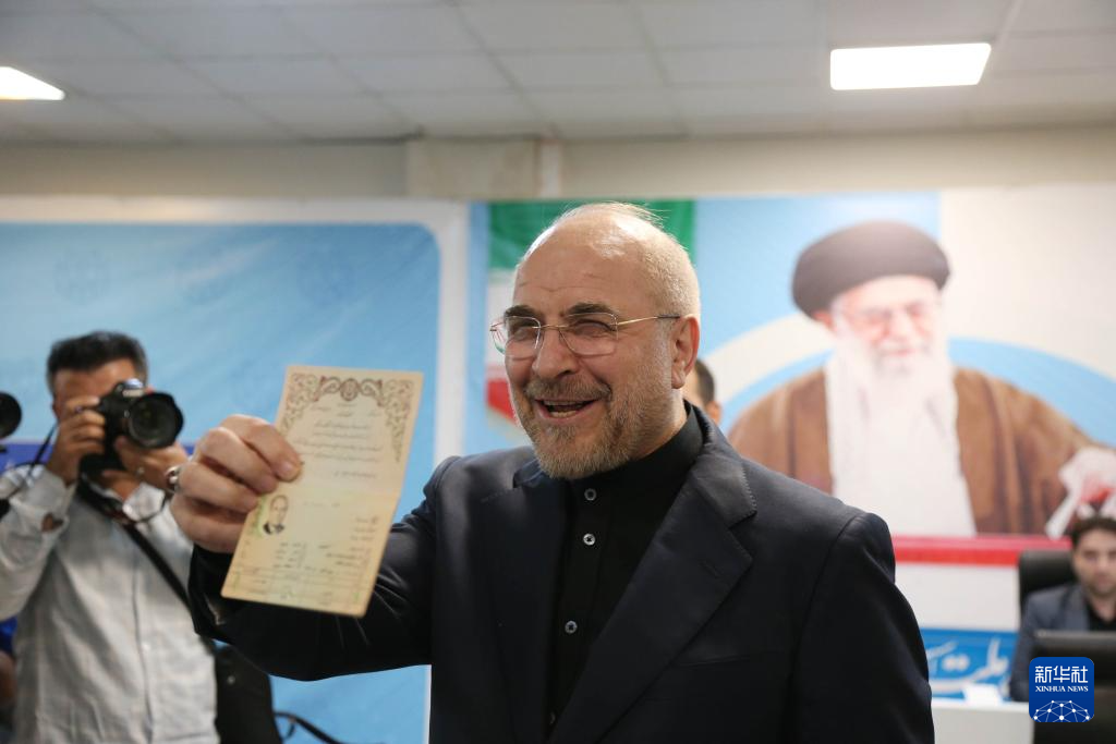 6月3日,伊朗议会议长卡利巴夫在德黑兰参加伊朗总统选举候选人登记。‎新华社记者 沙达提 摄