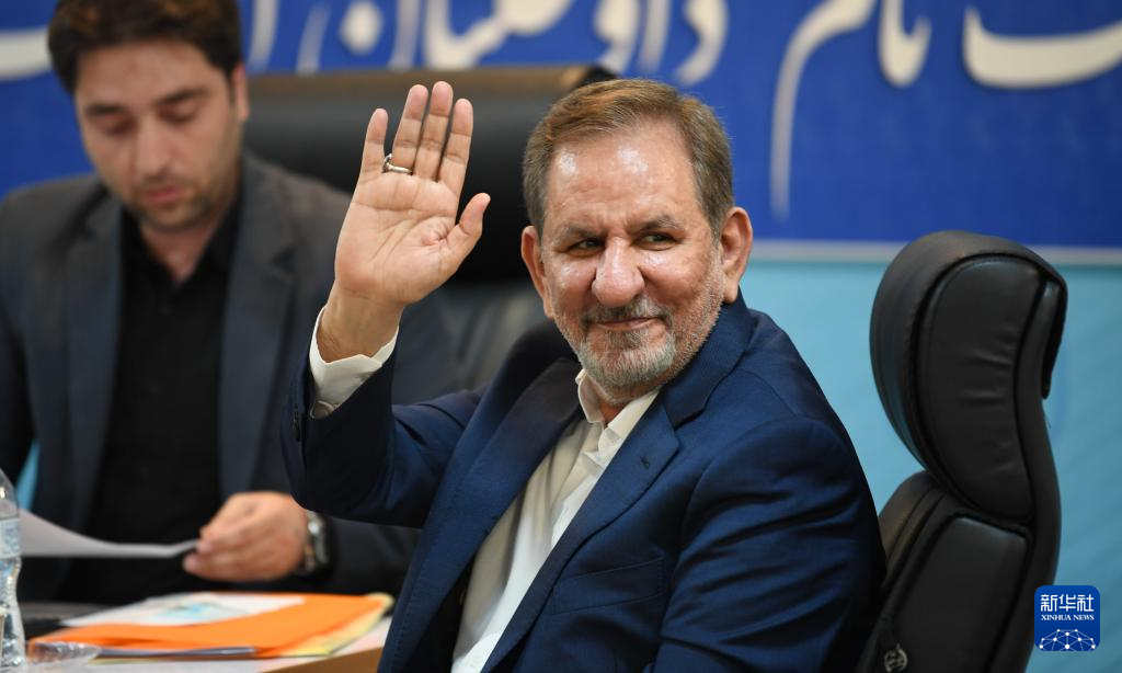 6月3日,伊朗前第一副总统埃沙格·贾汉吉里在德黑兰参加伊朗总统选举候选人登记。‎新华社记者 沙达提 摄