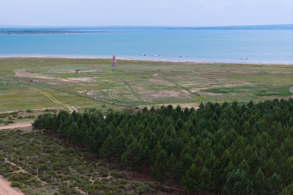陕西红碱淖国家级自然保护区进行生态修复后的湖滨(6月4日摄,无人机照片)。新华社记者 邵瑞 摄