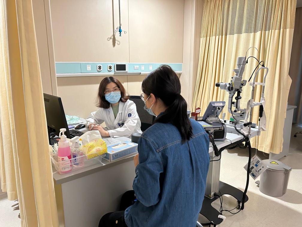 中华医学会眼科学分会眼病理学组副组长陈芝清在诊室与患者交流。(受访者供图)