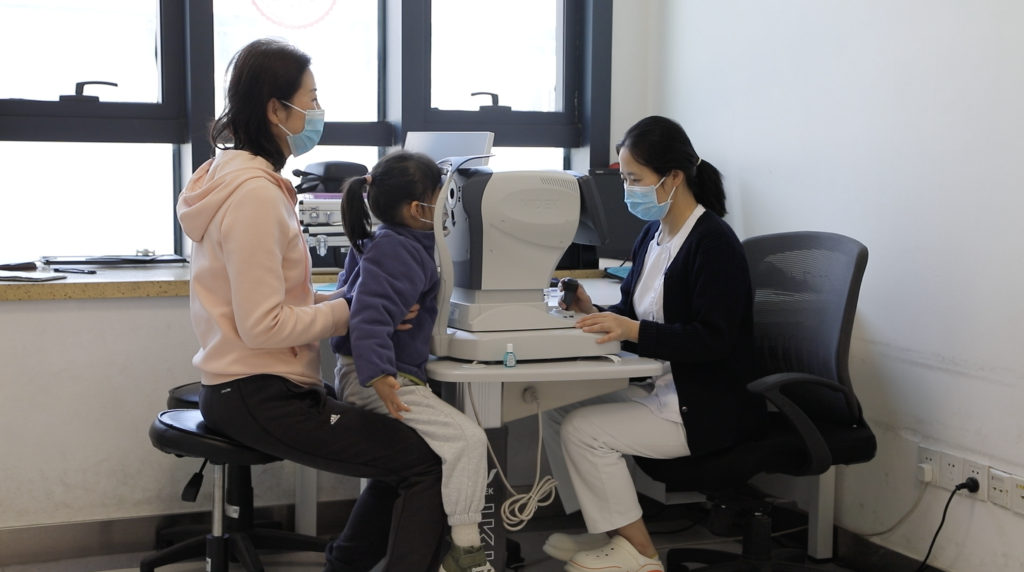 一名家长陪同孩子前往正规医疗机构检查视力。新华社记者 马莎 摄