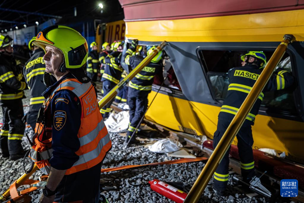 这张捷克消防和救援服务部门6月6日提供的照片显示,救援人员在捷克东北部城市帕尔杜比采的列车相撞事故现场工作。新华社发(米哈尔·凡塔摄/捷克消防和救援服务部门供图)pagebreak