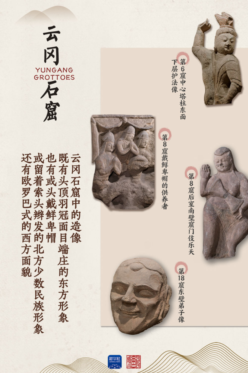 1500多年前,鲜卑族建立的北魏政权统一北方,推行汉化政策,汉族与少数民族文化以及外来文化加速融合。来自四面八方的工匠齐聚都城平城(今山西大同),用斧凿将那个年代的多元交融与兼容并蓄“凿”进石窟中。