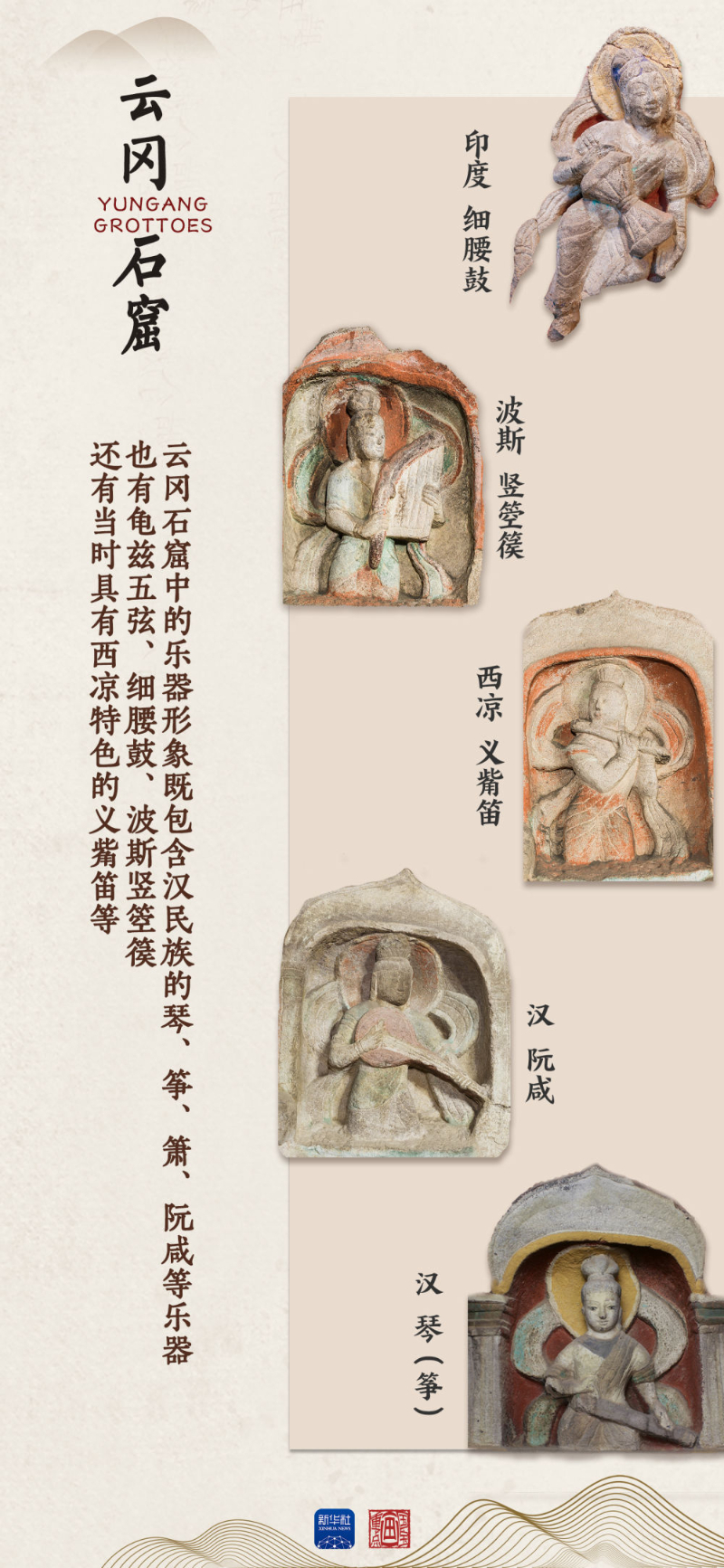 丝路漫漫,胡乐声声。根据相关统计,云冈石窟20余个洞窟500多件乐器造像中,胡乐器出现频率非常高,对此后隋唐时期胡汉音乐的深度融合起到开拓奠基作用。