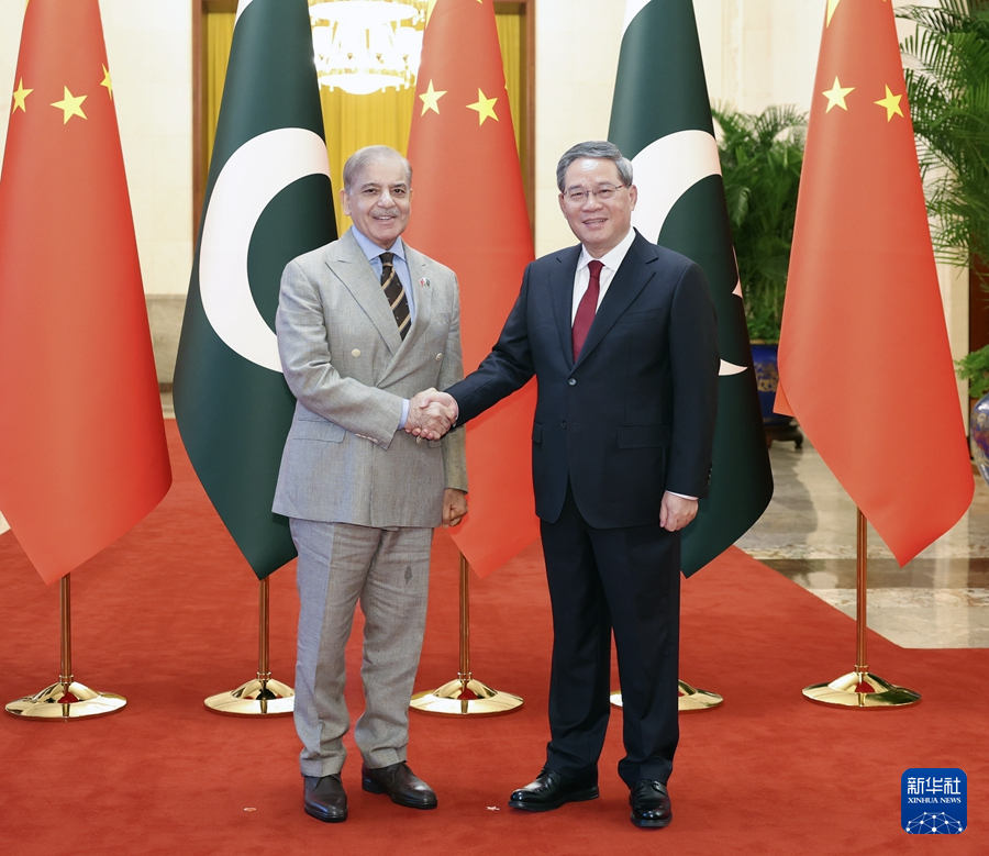 新华社北京6月7日电 国务院总理李强6月7日上午在北京人民大会堂同来华进行正式访问的巴基斯坦总理夏巴兹举行会谈。