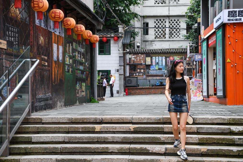 “我从小生长在这里,已经快70年,对这里充满感情,以前这里是棚户区,现在是打卡区,山城巷变得越来越有活力。”山城巷居民周英碧说,自己退休后在家门口售卖冰粉、重庆小面等小吃,最喜欢和游客“摆摆龙门阵”。